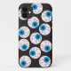 Great iPhone case with a Halloween theme. Dress up your phone for the spookiest day of the year with this modern, eye-catching case. Features scary eyes all over the case on a black background. Fun case great for any age.