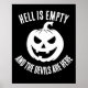 Halloween black and white Jack-o-lantern pumpkin face with personalised text quote: “Hell is empty, and the devils are here.” – William Shakespeare (The tempest).