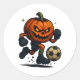 Halloween Scary Pumpkin Showing Soccer Skills Spoo Classic Round Sticker