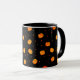 Funny and colourful Happy Halloween orange pumpkins, scary and creepy jack-o'-lantern with polka dots seamless pattern on black fun halloween gift mug for your family and friends who loves Halloween pumpkins pattern.