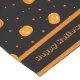 Funny and colourful Happy Halloween script orange pumpkins, scary and creepy jack-o'-lantern with polka dots seamless pattern and orange lines on black background. Fun halloween gift short Table Runner for your family and friends who loves Halloween pumpkins pattern. You can change the text or remove by clicking personalise button.
