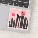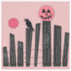 Halloween scene with fence, crow, full moon, & pumpkin on a fun pink background stickers.