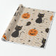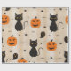 Halloween seamless pattern with black cat and ghos wrapping paper
