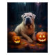 Get your furry friend ready for a howling good time with this adorable dog-inspired Halloween design! Featuring a spooky dog with pumpkins, this design is perfect for pet parents who want to include their four-legged family