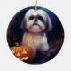 Halloween Shih Tzu With Pumpkins Scary Ceramic Tree Decoration