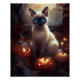 Halloween Siamese Cat With Pumpkins Scary Poster
