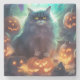 Halloween Siberian Cat With Pumpkins Scary Stone Coaster