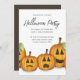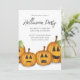 Painted orange whimsical Jack O Lanterns in a pumpkin patch. With a QR code and map icon, add your own URL. These perfect orange pumpkins together with sage green leaves make a great design for any product. Painted or watercolor effects. Halloween party cute pumpkins simple, whimsical jack o'lanterns lantern, spooky scary creepy Halloween, Halloween party invitations, an orange black simple minimalist minimal, modern calligraphy script font, whimsical typography text, smiling jack o'lanterns lanterns, lanterns cute pumpkins happy Halloween, October fall autumn party invites