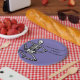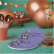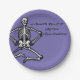 Party paper plate shown in purple with a Halloween skeleton print. Shown is 7" size. Customise this plate or buy as is.