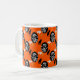 A cute pattern of a white skeleton and ghost, a black cat, and a moon with some stars, against a bright orange background. Great for Halloween, and for those who love spooky skeletons, cats, and ghosts.