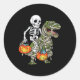 Halloween Skeleton Riding Mummy Dinosaur T Rex Fun Classic Round Sticker
