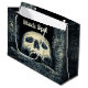 White grinning skull against the black or dark background. The text Black Spot over the skull. Customisable Halloween large gift bag for anyone. You can change the image and you can change or delete the text. Pirates were presented with a Black Spot to officially pronounce some verdict. Have fun and Happy Halloween.