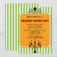 © 2010 Socialite Designs. A fun Halloween gala or costume party invitation design ready for you to personalise with your own text. The invitation design incorporates a scroll with a skull and a candelabra. The background has green and white stripes.
