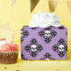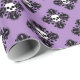 Cute wrapping paper in purple with white fanged skulls on a black damask motif pattern. This is great for wrapping those Halloween door prizes in.