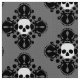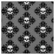 Fabric for Halloween in grey, black, and white. This features an elegant skull damask pattern in it.