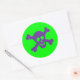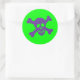 A green and purple happy skull and cross bones sticker. A sheet of 6 large stickers is perfect for decorating your Halloween greeting card envelops, but the stickers can also be printed in a smaller size.