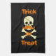 A skull or skull and crossbones with a moustache. A pirate skull , with barbed wire strap eye patch , with a moustache. May include messages of Happy Halloween , Trick or Treat , Merry Christmas , etc. .