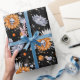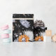 Colourful Halloween skulls and flowers seamless pattern over black background.