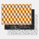 Cute Set of 3 Halloween Spider Web Bats and Candy Corn Argyle Gift Wrapping Paper Sheets for a Halloween party.