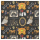 This fabric, with black background, has art by me, Kristie Hubler, all your favourite spooky themed halloween art, pumpkins with Edvard Munch style "Scream" faces, skulls with tattoos, the headless horseman with humble horse, carrying a pumpkin, riding in a pumpkin carriage, leaves, a squirrel throwing leaves in the air, a copper lantern, skeletons, "BOO" in fabric shaped letters, a witch on her broomstick, a pumpkin fairy, a tree come to life, a mysterious owl with pinecone pattern coat, "HALLOWEEN" in fabric shaped letter font, ravens kissing inside a black feathered, heart shape wreath artwork inside a book, apples, 3 cute ghosts wanting to trick or treat, different shape broomsticks, and a mirror, mirror, with sullen face, fortelling a story, inside a skull carved oval frame. All in basic repeat pattern. Artwork copyright protected by Kristie Hubler.