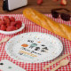 Halloween birthday spooktacular party plate with cute witch, black cat, frankenstein