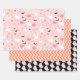 Halloween spooktacular party wrapping paper sheets. This wrapping paper features spider's webs, ghosts, pumpkins, bats, spiders, leaves, corns, stars, daisies on pink background, orange pink chevron and dusty pink ghosts on black background.