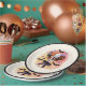 Cute watercolor illustration of Halloween decorated cake pops with designs of pumpkin, jack-ol-lantern, spider, cobweb and ghost. These Halloween party paper plates are the perfect addition to any kids, family, or adult Halloween party. These plates feature a fun orange and yellow design that will go perfectly with your other bright and colourful Halloween party decorations.