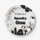 Spooky one halloween Paper plate!" This is ideal for an October birthday or a spooky party. The template is ready for you to modify, and there are related things in my store, under the eerie Halloween collection.