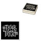 This stamp is of wood and features a Halloween Trick or Treat graphic print.