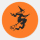 Round sticker shown with a halloween witch print. Customise this item or buy as is.