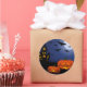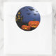 Large round sticker shown with a Halloween haunting pumpkins print.