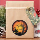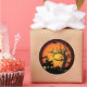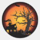 Round shape sticker shown in a Halloween haunted house print. Customise this item or buy as is.