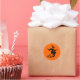 Halloween party stickers | envelope sealers with wicked witch on a broom. Black and orange design with scary witch.