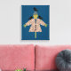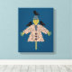 This awesome canvas print features a digital art image of a straw scarecrow with ravens sitting on its head and arms. The scarecrow is mounted on a wooden stake and is wearing an old blue shirt and brown jacket with buttons. It has a grey hat on its head and straw poking out from the arms of the jacket. The eyes are crosses and the mouth is twisted in an evil frown.