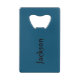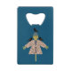 This awesome bottle opener features a digital art image of a straw scarecrow with ravens sitting on its head and arms. The scarecrow is mounted on a wooden stake and is wearing an old blue shirt and brown jacket with buttons. It has a grey hat on its head and straw poking out from the arms of the jacket. The eyes are crosses and the mouth is twisted in an evil frown. There is custom text on the back so you can include a name or message of your choice.