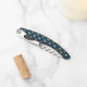 This awesome corkscrew features a digital art image of a straw scarecrow with ravens sitting on its head and arms. The scarecrow is mounted on a wooden stake and is wearing an old blue shirt and brown jacket with buttons. It has a grey hat on its head and straw poking out from the arms of the jacket. The eyes are crosses and the mouth is twisted in an evil frown.