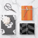 Halloween stripes, herringbones and skulls wrapping paper sheet