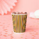 Bright stripes in Halloween colours of orange, black, yellow-green, and white combine to make a colourful paper cup. It's not so obviously Halloweeny, and could be used all year round. Perfect for Thanksgiving, as well.