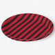 This Halloween paper plate is shown with a festive black and red stripes design.
