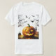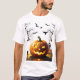 The image features a glowing jack-o'-lantern with a mischievous smile, set against a spooky Halloween backdrop. Bare trees stand on either side, with tombstones and a distant haunted house adding to the eerie atmosphere. The dark, shadowy background highlights the pumpkin’s warm glow, creating a classic Halloween vibe.