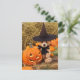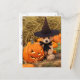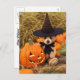 A charming Halloween postcard featuring a teddy bear and a jack-o'-lantern.