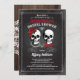 Designed with retro chalkboard, skulls and red roses & bow tie. Back side is decorated with elegant lace graphic.