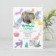Birthday party invitation with illustrated Halloween motifs. You can customise it with your baby's favourite photo and you can modify all the text that comes out. On the back a poster with fun ghosts flying.