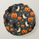 It is a cute Halloween-themed circular cushion.