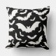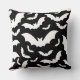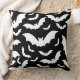 This throw pillow is shown in a black colour with a Halloween bats print design.