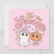 Halloween Tis the Season invitation card features an adorable ghost in a lavender witch hat, and jack-o-lantern of orange, and text that reads Tis the Season, an adorable, feminine Halloween design.