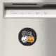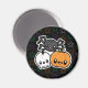Magnet with a cute halloween design of a pumpkin, skull, and spider.