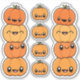 Stickers with a cute halloween illustration. This design has adorable smiling pumpkins in shades of orange.