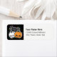 Return address labels with a cute halloween design of a pumpkin, skull, and spider.