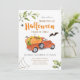 Halloween template with a red truck, pumpkins, sunflowers, spider, cute bat, greenery, and grey chequered back. To access advanced editing tools, please go to “Personalise”, scroll down and press the "click to customise further" link.